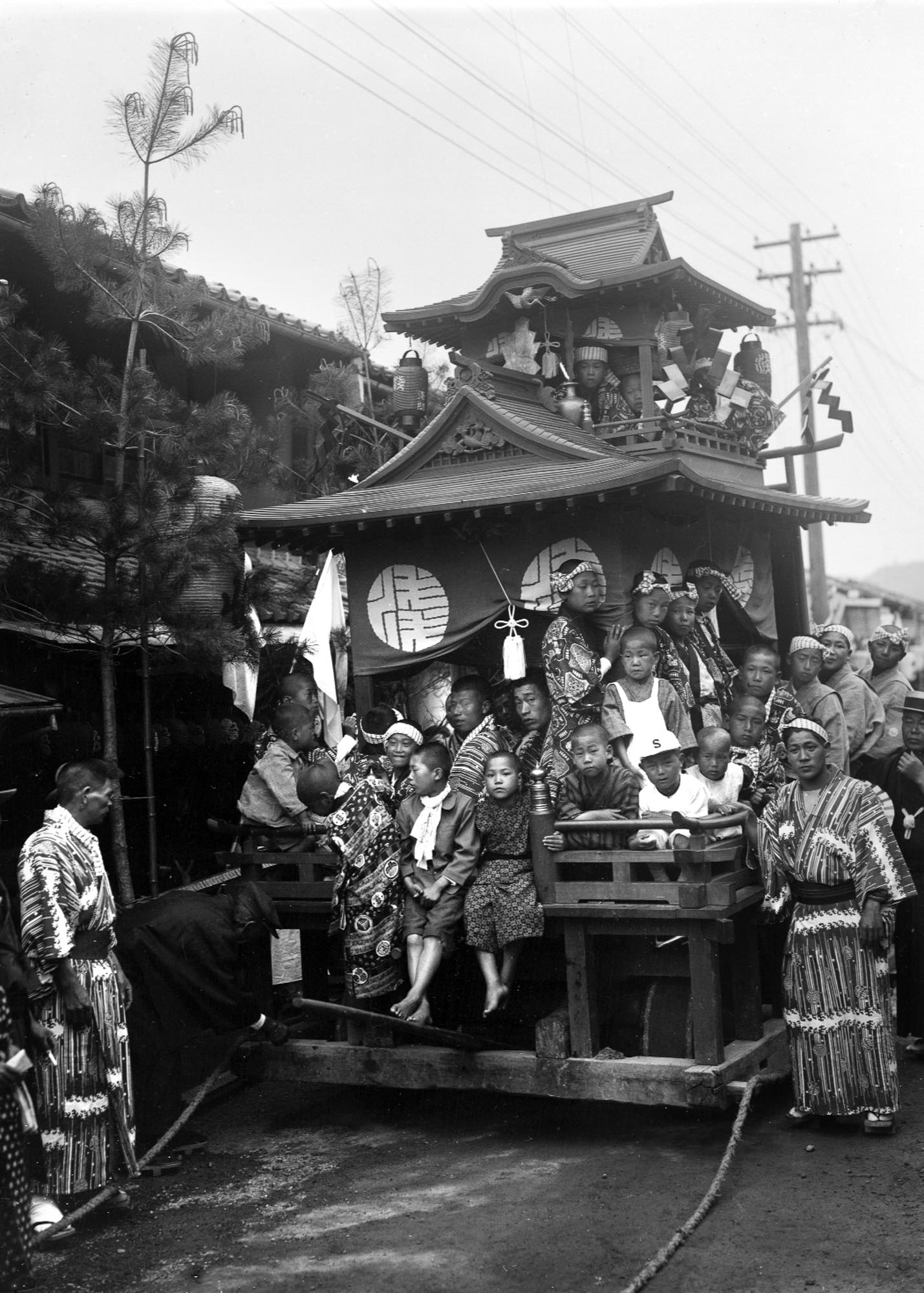 古写真に見えるように、当初の「浅間山」は、長浜曳山祭の曳山を小型にしたような舞台型の山車の形状をしていました。しかし、子供歌舞伎や踊りを見せるのではなく、山車の上で独特の囃子を演奏してきました。