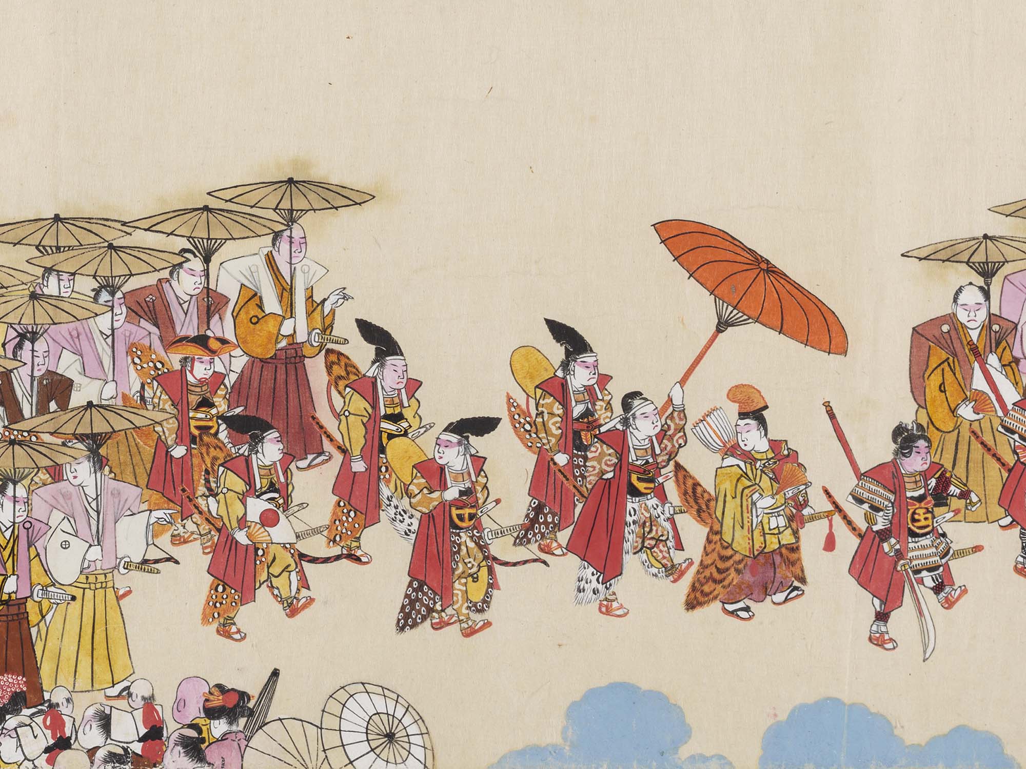 廣嶺神社が所蔵する江戸後期の絵巻物「小浜祇園祭礼図」(県指定文化財)には、源頼朝や曾我五郎などに扮した練り子の一団が描かれており、これが大蔵小路が出していた「頼朝」の練り子だと思われます。